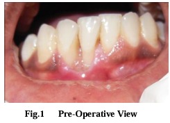 INTRODUCTION: Autogenous gingival grafting is a well established pure mucogingival procedure forincreasing the width of keratinized gingiva. This procedure has proven reliable in increasing keratinized gingiva and stopping progressive gingival recession. The long term stability (upto 4 years) of these treatment outcomes has been demonstrated.