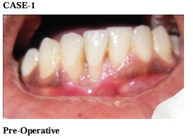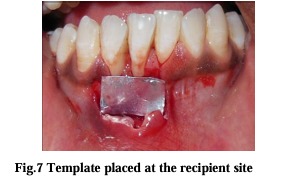 Immediately after surgery periodontal dressing was placed on the recipient site and the donor site. After surgery, a non-steroidal anti-inflammatory (Ibugesic-Ibuprofen + Paracetamol B.D for 5 days) was prescribed. No systemic antibiotics were utilized. Patients were instructed not to brush the teeth in the treated area. All patients were placed on 0.2% chlorhexidine gluconate twice daily, for one minute, for 4-6 weeks. They were instructed not to disturb the pack and to avoid to disturb the pack and to avoid undue trauma to the treated site. One week following surgery, periodontal pack was removed. At this time the healing was observed and a second periodontal pack was placed if necessary. After irrigation with saline, polishing was done with the help